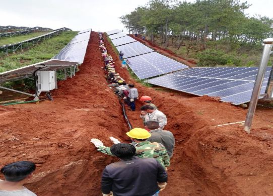 云南保山地区初夏处于雨季,连续两个月的不间断降雨,甚至一天降雨达到3次至4次之多,气候条件十分恶劣。外线施工是整个并网节点的重中之重,外线1公里架空线路施工中受到极大阻力,要跨越当地水电站的35KV线路,必须要停掉水电站的35KV线路才能施工。面临跨越档距大、停电赔偿、工期紧张,项目部与华南公司经过一个星期的协调公关,向保山市电力公司报备施工计划,历时7天完成架空线路施工。项目部在施工过程中遇到了各种各样的困难,在与当地政府部门、EPC、监理方等的密切配合下,全部得到了顺利解决。